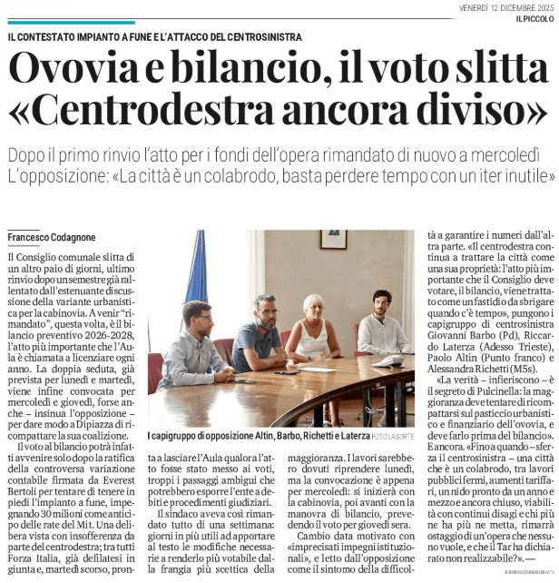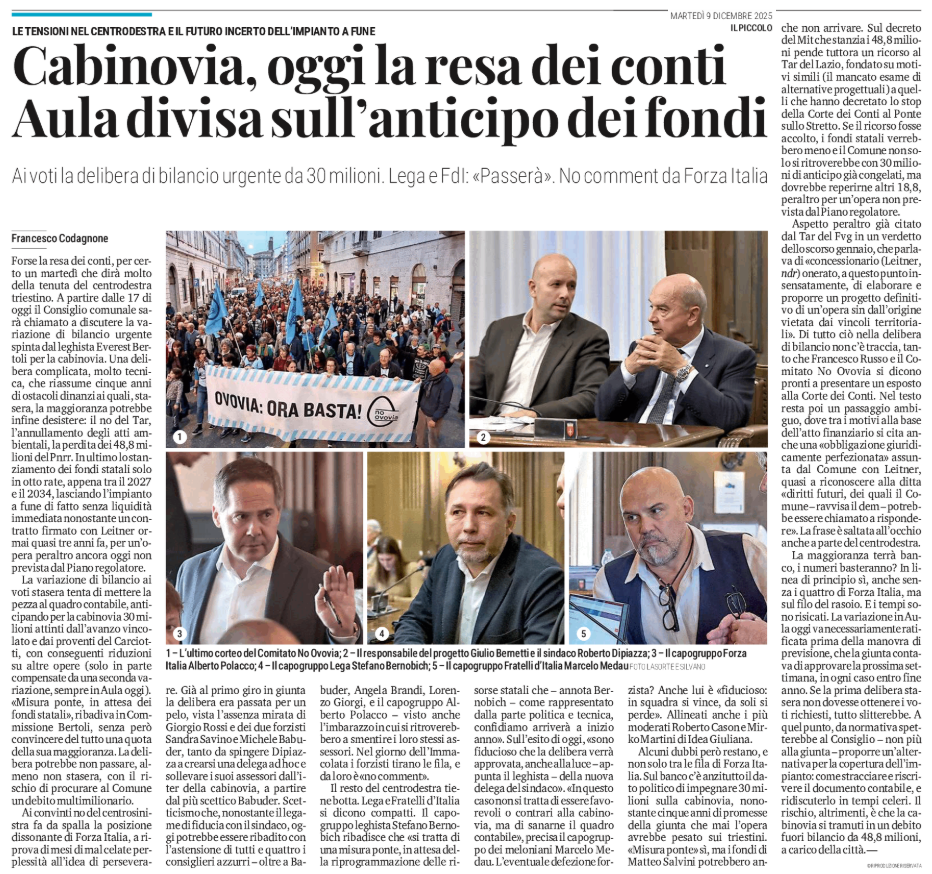 Ovovia e bilancio, il voto slitta «Centrodestra ancora diviso» - il contestato impianto a fune e l'attacco del centrosinistra