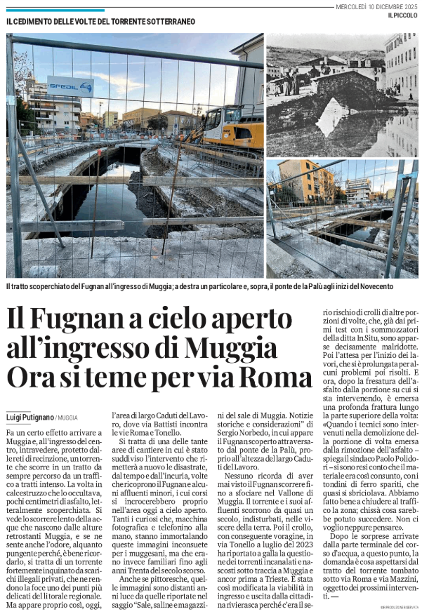 Il Fugnan a cielo aperto all'ingresso di Muggia - Ora si teme per via Roma - il cedimento delle volte del torrente sotterraneo