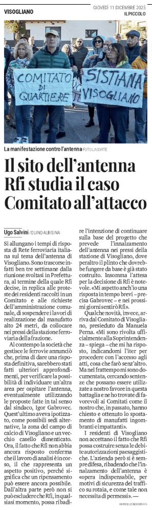 Visogliano - Il sito dell'antenna - Rfi studia il caso - Comitato all'attacco