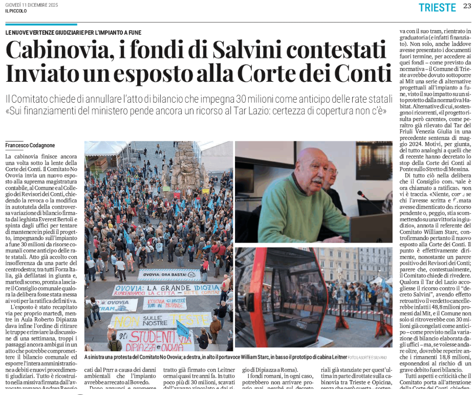 Cabinovia, i fondi di Salvini contestati - Inviato un esposto alla Corte dei Conti - le nuove vertenze giudiziarie per l'impianto a fune
