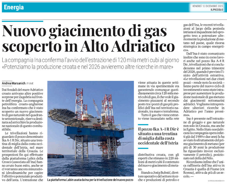 Nuovo giacimento di gas scoperto in Alto Adriatico