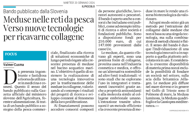 Meduse nelle reti da pesca Verso nuove tecnologie per ricavarne collagene - Bando pubblicato dalla Slovenia