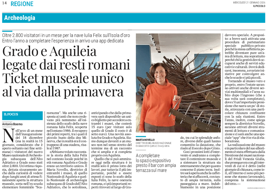 Oltre 2.800 visitatori in un mese per la nave Iulia Felix sull'Isola d'oro - Entro l'anno a completare l'esperienza in arrivo una app dedicata