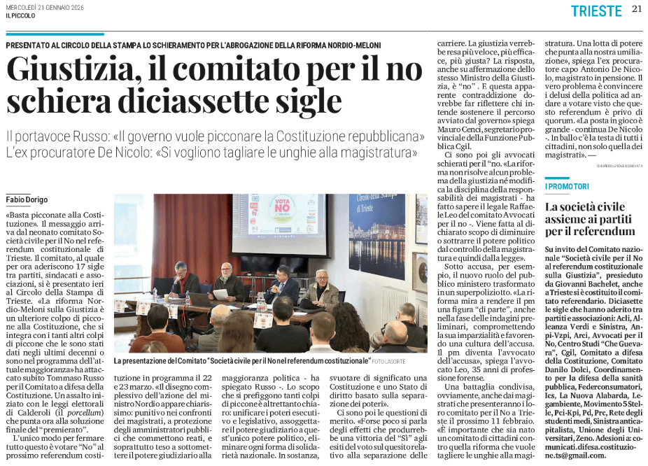 Presentato al Circolo della stampa lo schieramento per l'abrogazione della riforma Nordio-Meloni