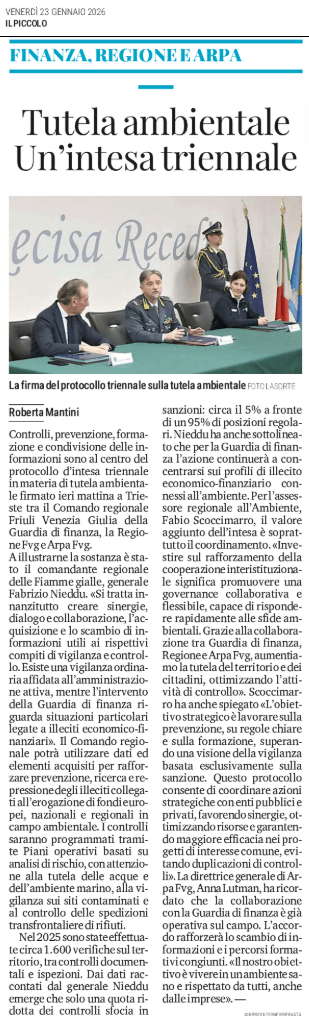 Accordo tra Finanza, Regione e ARPA - Tutela ambientale - Un'intesa triennale