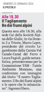 Il Tagliamento Re dei fiumi alpini - Questa sera alle 18.30, alla sede Cai della Società Alpina delle Giulie