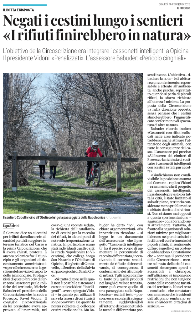 Negati i cestini lungo i sentieri «I rifiuti finirebbero in natura»