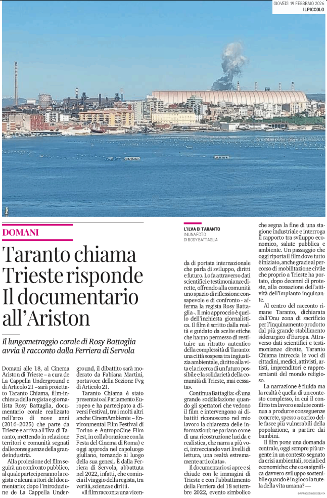 DOMANI - Taranto chiama Trieste risponde - Il documentario all'Ariston