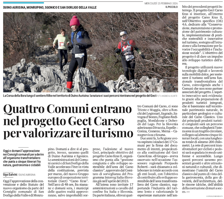 Quattro Comuni entrano nel progetto Gect Carso per valorizzare il turismo - Duino Aurisina, Monrupino, Sgonico e San Dorligo della Valle