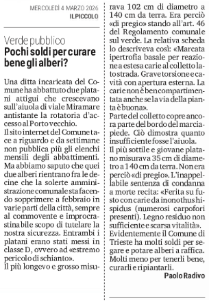 SEGNALAZIONI - Verde pubblico - Pochi soldi per curare bene gli alberi? - (Paolo Radivo)