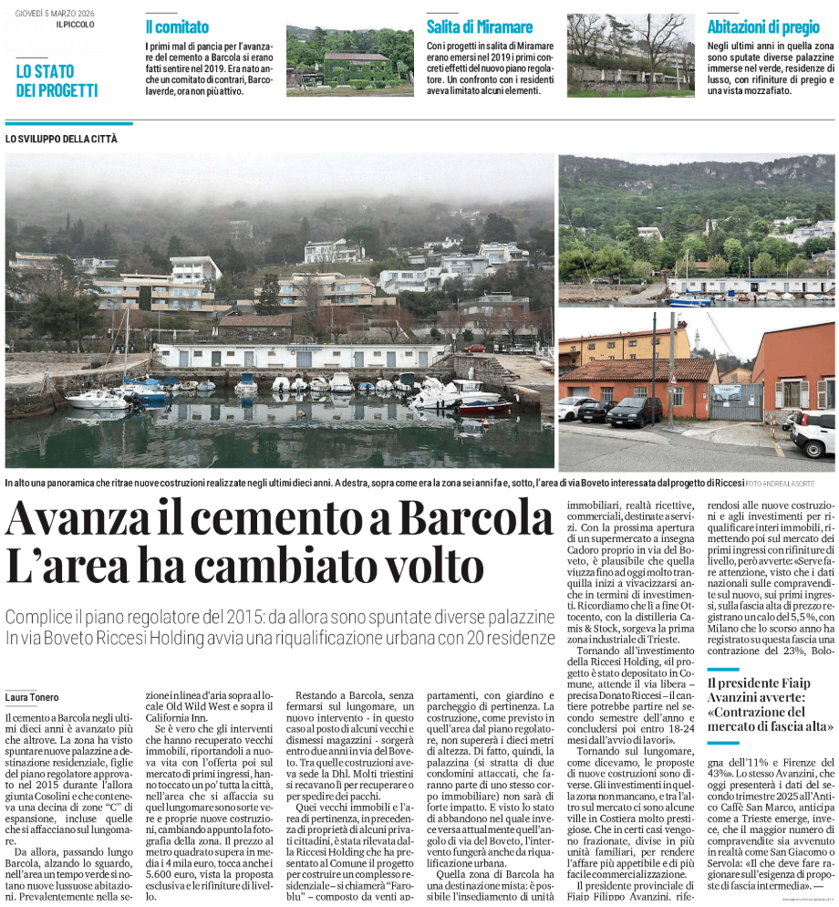 Avanza il cemento a Barcola - L'area ha cambiato volto