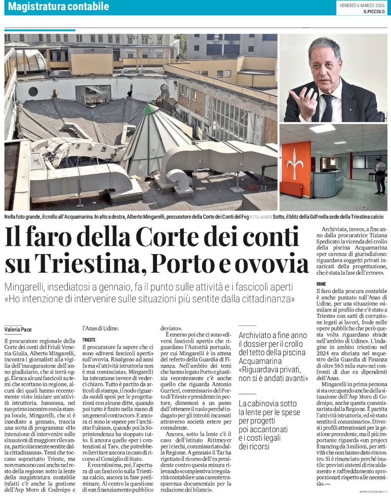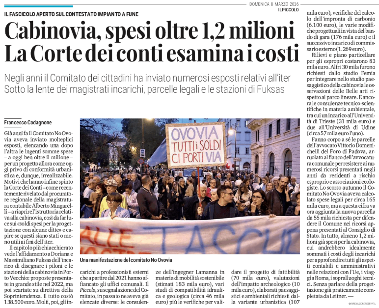 Il faro della Corte dei conti su Triestina, Porto e ovovia