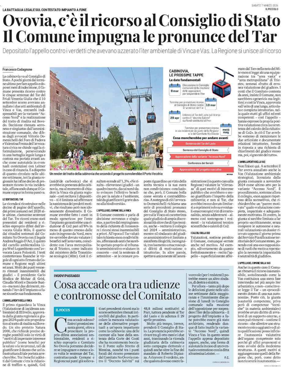 Ovovia al Consiglio di Stato - Dieci giorni per fare ricorso