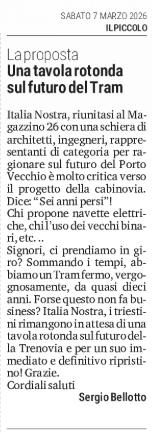 SEGNALAZIONI - La proposta - Una tavola rotonda sul futuro del Tram - (Sergio Bellotto)