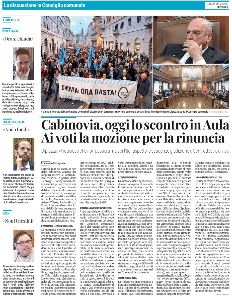 Cabinovia, Lega e FdI si astengono - La mozione di Russo arriva in Aula - la Conferenza dei Capigruppo: nuove crepe nella maggioranza