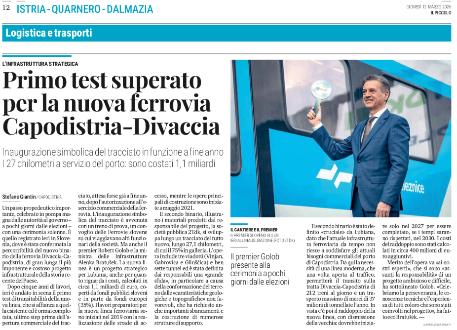 Primo test superato per la nuova ferrovia Capodistria-Divaccia