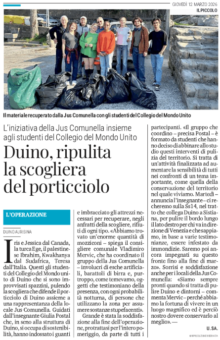 Duino, ripulita la scogliera del porticciolo - L'iniziativa della Jus Comunella insieme agli studenti del Collegio del Mondo Unito