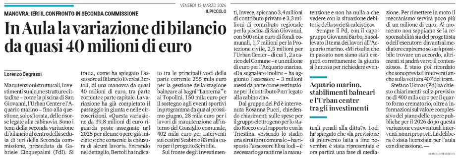 In Aula la variazione di bilancio da quasi 40 milioni di euro - manovra: ieri il confronto in seconda commissione