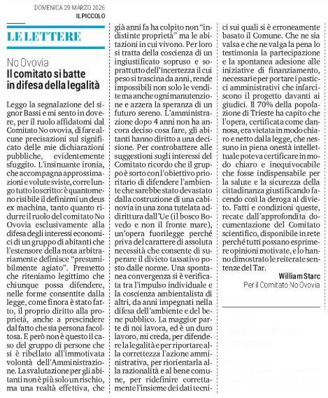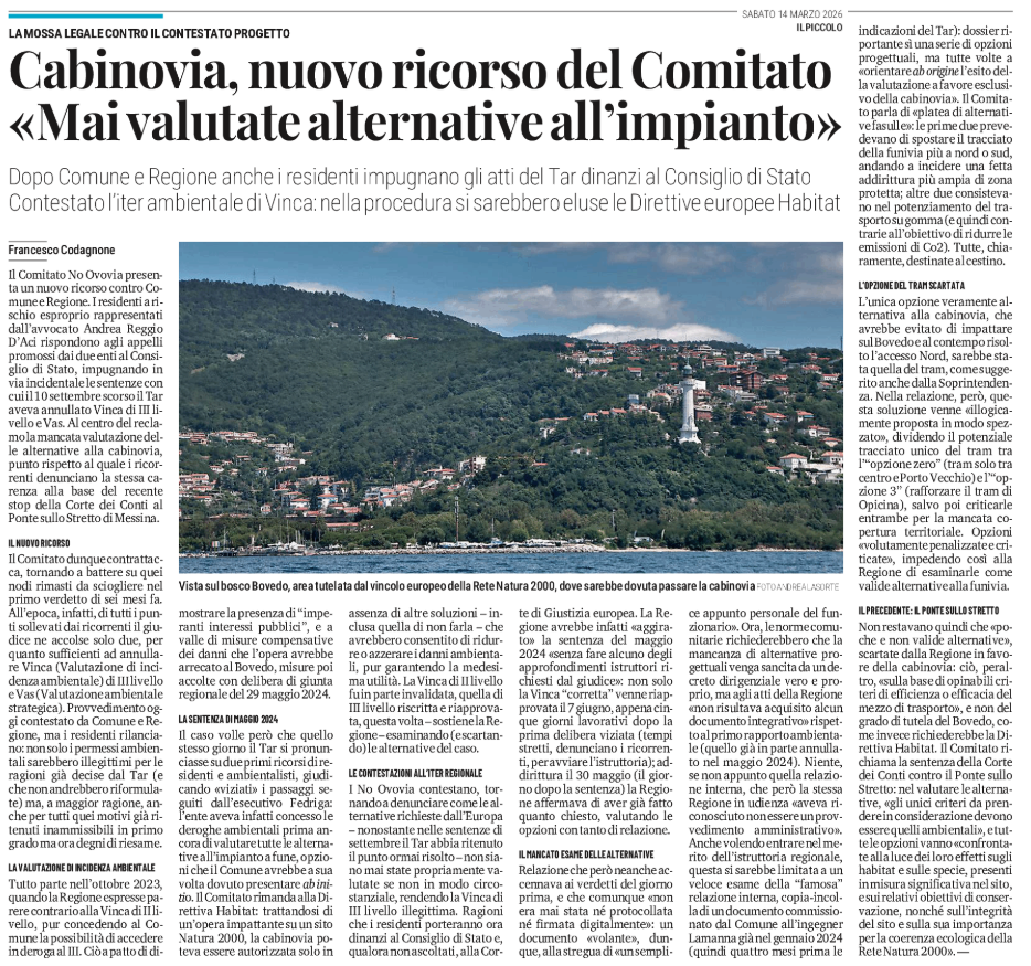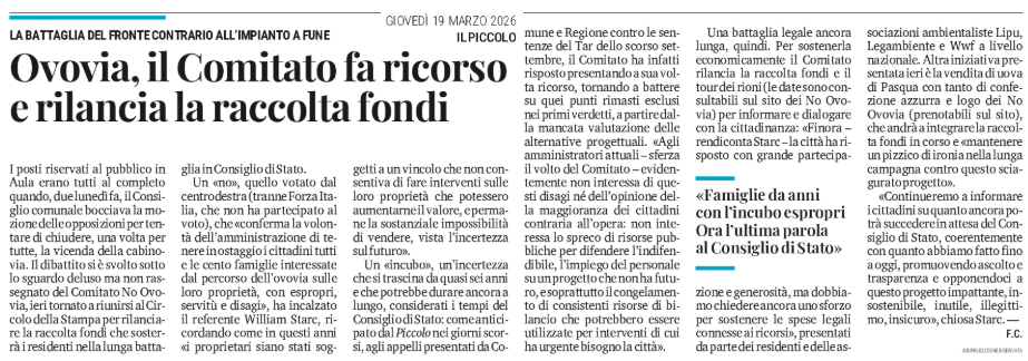 SEGNALAZIONI - No Ovovia - Il comitato si batte in difesa della legalità - (William Starc - Per il Comitato No Ovovia)