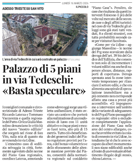 Palazzo di 5 piani in via Tedeschi: «Basta speculare» - Adesso Trieste su San Vito