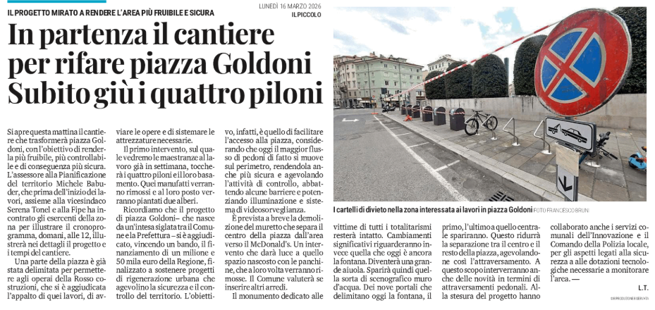 Aperto il cantiere di piazza Goldoni - Oggi al via lo smontaggio dei piloni - il progetto di riqualificazione