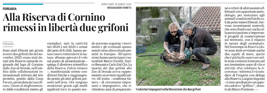 Forgaria - Alla Riserva di Cornino rimessi in libertà due grifoni
