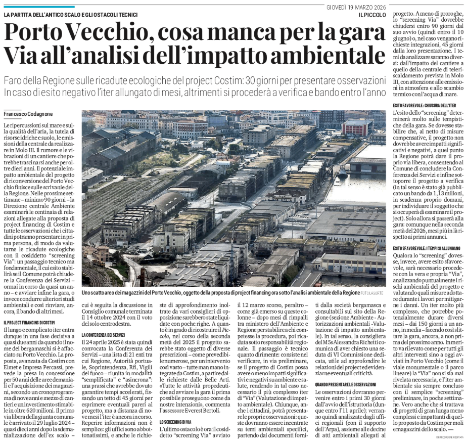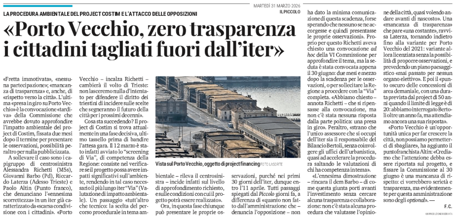 «Porto Vecchio, zero trasparenza i cittadini tagliati fuori dall'iter» - la procedura ambientale del project Costim e l'attacco delle opposizioni