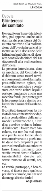 SEGNALAZIONI - Ovovia - Gli interessi del comitato - (Angelo Bassi)