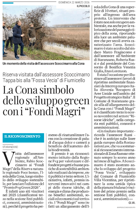 La Cona simbolo dello sviluppo green con i "Fondi Magri"