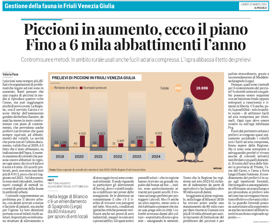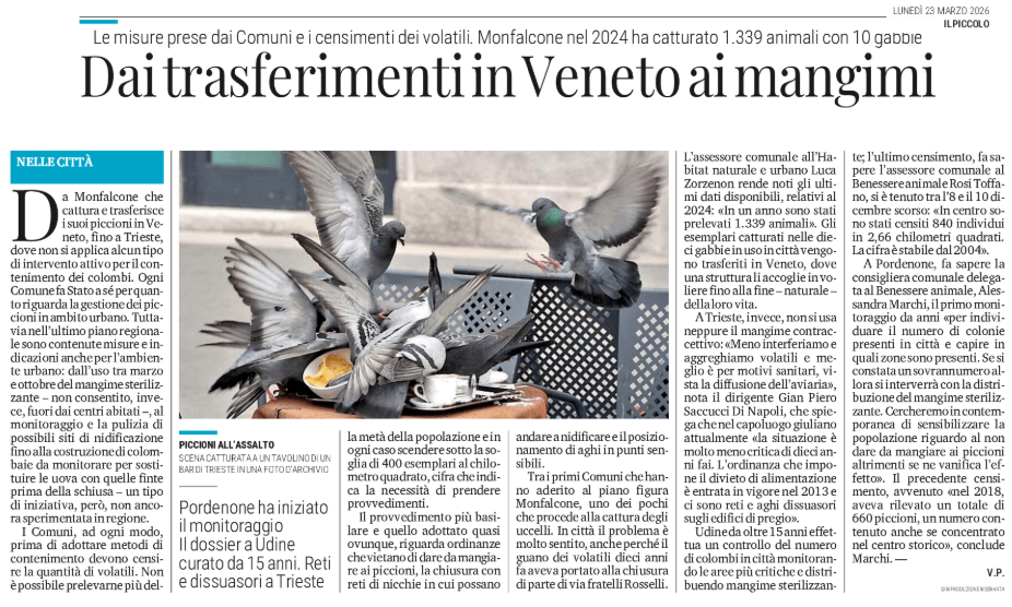 Le misure prese dai Comuni e i censimenti dei volatili. Monfalcone nel 2024 ha catturato 1.339 animali con 10 gabbie