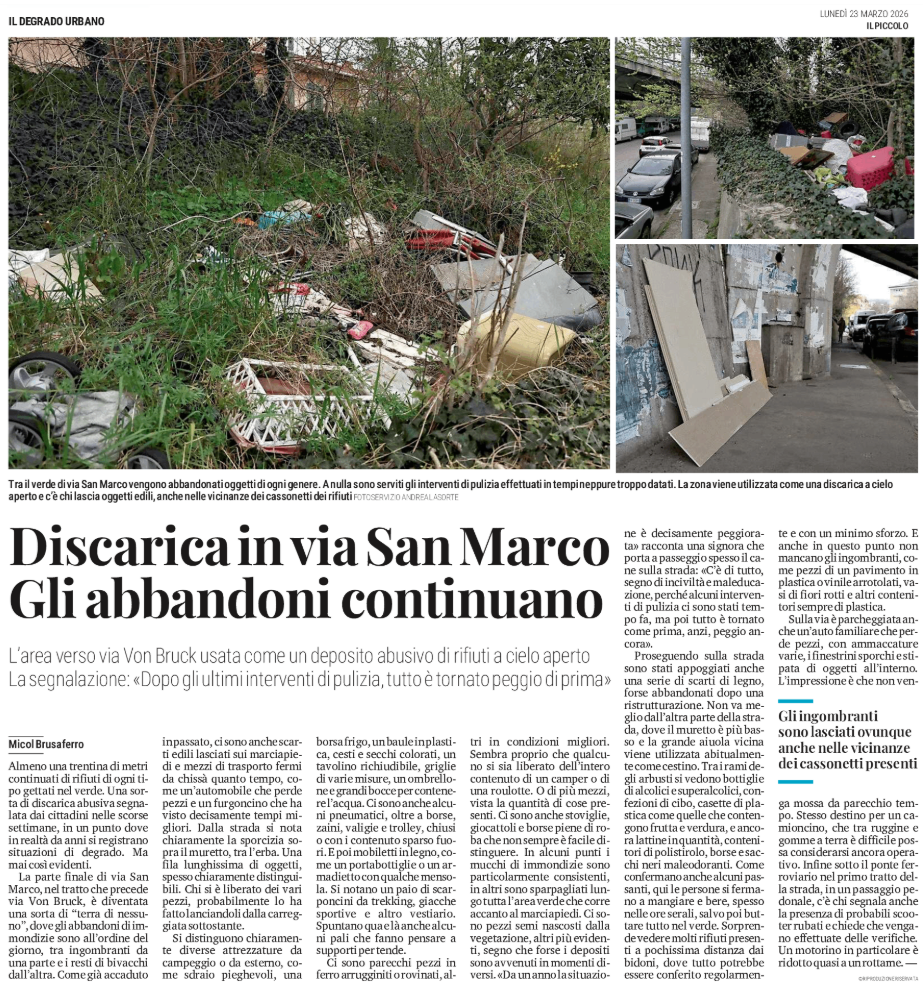Il degrado urbano - Discarica in via San Marco - Gli abbandoni continuano