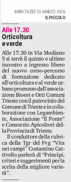 Orticoltura e verde - Alle 17.30 in via Modiano 5