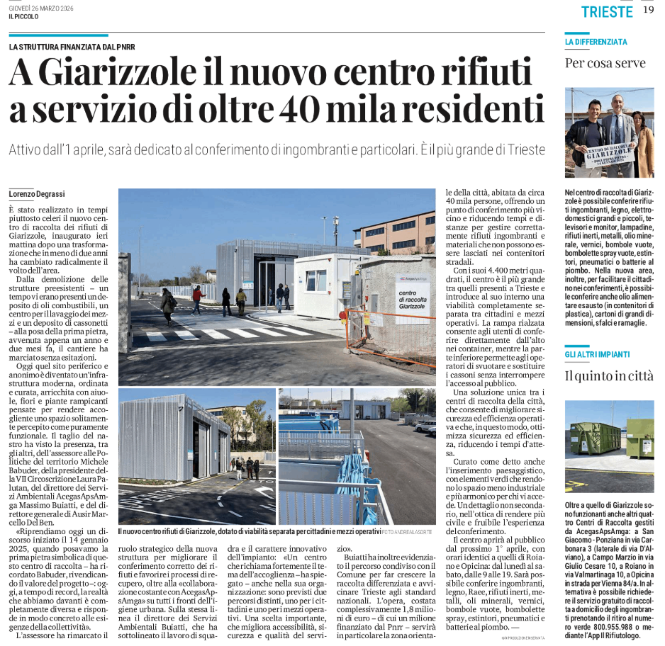 A Giarizzole il nuovo centro rifiuti a servizio di oltre 40 mila residenti - La struttura finanziata dal PNRR