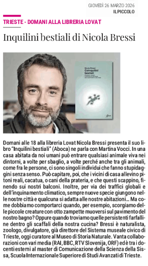 Inquilini bestiali di Nicola Bressi - Trieste - Domani alla libreria Lovat