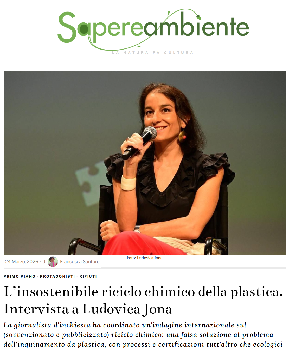 La giornalista d'inchiesta ha coordinato un'indagine internazionale sul (sovvenzionato e pubblicizzato) riciclo chimico: una falsa soluzione al problema dell'inquinamento da plastica, con processi e certificazioni tutt'altro che ecologici