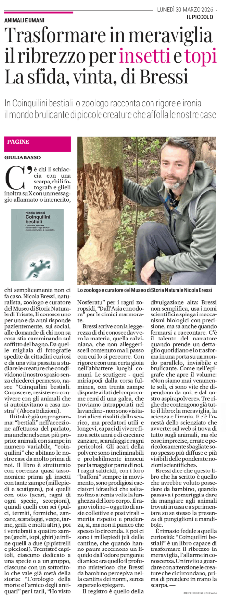 Animali e umani - Trasformare in meraviglia il ribrezzo per insetti e topi - La sfida, vinta, di Bressi