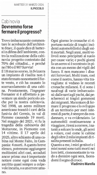 SEGNALAZIONI - Cabinovia - Dovremmo forse fermare il progresso?