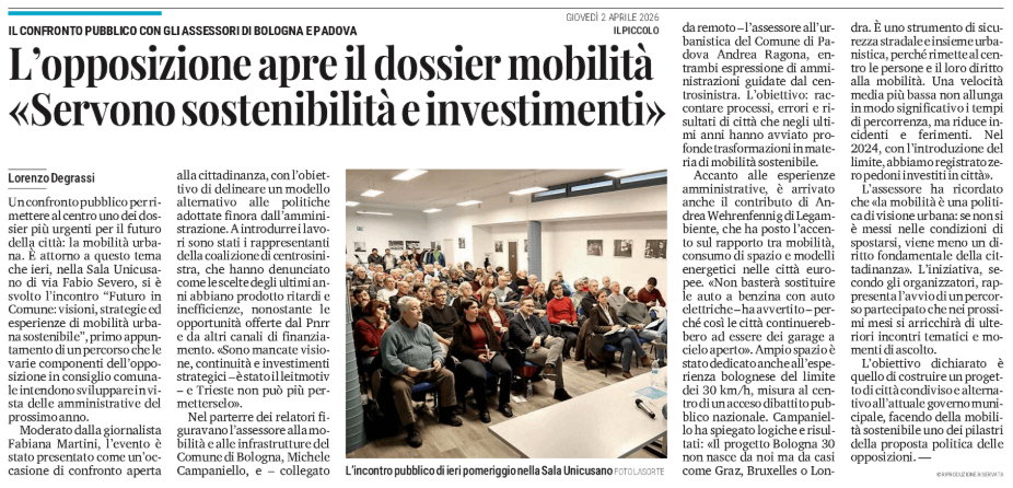 L'opposizione apre il dossier mobilità «Servono sostenibilità e investimenti» - il confronto pubblico con gli assessori di Bologna e Padova