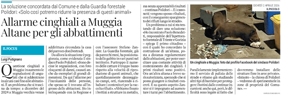 Allarme cinghiali a Muggia - Altane per gli abbattimenti