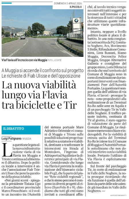 La nuova viabilità lungo via Flavia tra biciclette e Tir - A Muggia si accende il confronto sul progetto - Le richieste di Fiab Ulisse e dell'opposizione