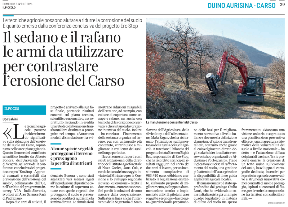 Le tecniche agricole possono aiutare a ridurre la corrosione del suolo. È quanto emerso dalla conferenza conclusiva del progetto Ero Stop