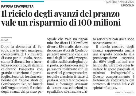 Pasqua e Pasquetta - Il riciclo degli avanzi del pranzo vale un risparmio di 100 milioni