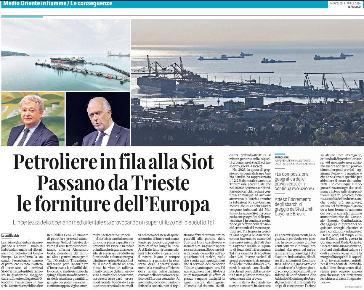 Petroliere in fila alla Siot - Passano da Trieste le forniture dell'Europa