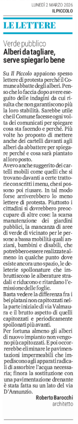 SEGNALAZIONI - Verde pubblico - Alberi da tagliare, serve spiegarlo bene - (Roberto Barocchi - architetto)